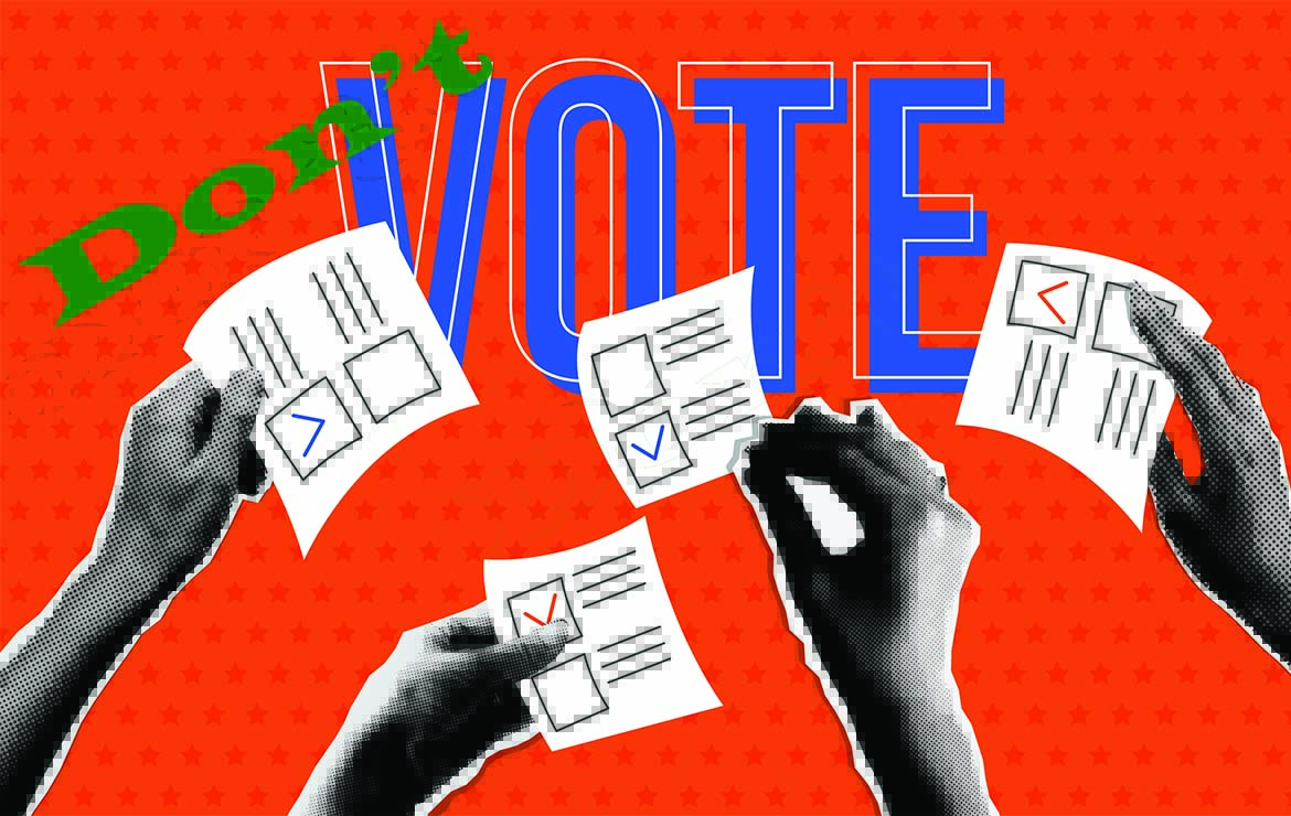 Pilalle mennyt ääni on edelleen sakramenttiin osallistumista. Miksi yrittää ”lähettää viesti” niille, jotka eivät ole lainkaan kiinnostuneita meistä? Epäinhimillinen järjestelmä ansaitsee vain halveksuntaa ja kieltämistä, ei minkäänlaista sitoutumista tai hyväksyntää. Tähän orjuutusjärjestelmään on saattanut jäädä kiinni inhimillisiä, mutta harhaanjohdettuja olentoja, jotka, voitaisiin väittää, ”ansaitsevat” äänesi – järjestelmä ei ansaitse.