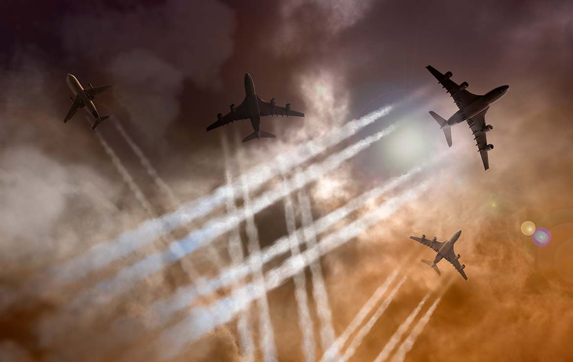Todisteet osoittavat, että on olemassa yksityisomistuksellinen, erikoistunut lentokonelaivasto, joka on erityisesti kehitetty ja valmistettu ruiskuttamaan kemikaalivanoja ja muuten yksinomaan osallistumaan meneillään olevaan maailmanlaajuiseen säänmuutosohjelmaan, jota kutsutaan tässä nimellä New Manhattan Project. Nämä lentokoneet ovat tämän päivän operaatioiden työhevosia ja niitä on luultavasti satoja. Katso koko tarina kirjastani Chemtrails Exposed: A New Manhattan Project.