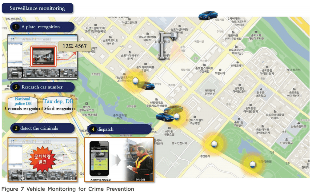 ”International Case Studies of Smart Cities: Songdo, Republic of Korea” -raportin mukaan, Songdo tarjoaa useita turvallisuus- ja ympäristötoimenpiteitä tehdäkseen elämästä turvallisempaa ja kestävämpää. Siinä ei kuitenkaan mainita yksityisyyden suojauksista tai seurauksia siitä, että elävä kaupunki on kytketty verkkoon ja kuuntelee kansalaisiaan päivittäin. Raportissa todetaan, että ”Songdo U-kaupunki kerää 24 tunnin reaaliaikaista dataa paikan päällä olevista laitteista, kuten CCTV:stä, erilaisista anturilaitteista ja liikenneilmaisimista”.