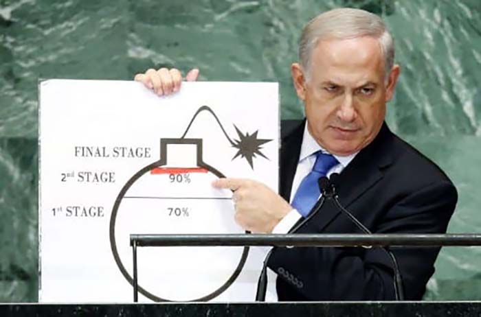 Silloisen Iranin ulkoministerin Mohammad Javad Zarifin mukaan, Bibi on ”esittänyt väitteitä Iranista vuodesta 1992 lähtien. Vuonna 1992 meidän piti, Zarifin mukaan, saada pommi valmiiksi noin viidessä vuodessa. Vuonna 1996 vielä viisi vuotta. Joten hän on julkistanut – jopa todistanut kongressille – että Iran on juuri valmistamassa ydinasetta.”