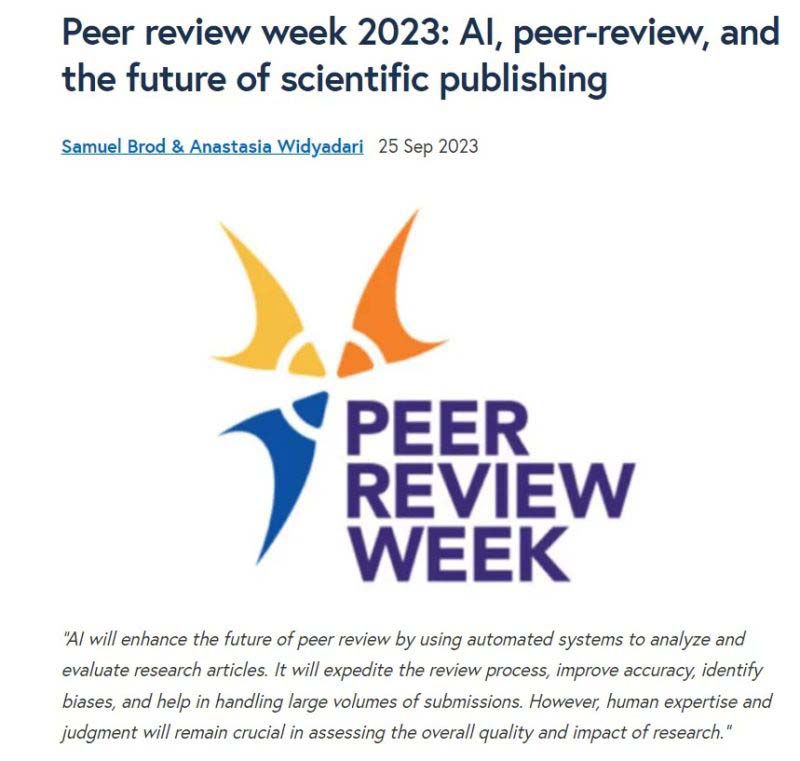 ”Tekoäly parantaa vertaisarvioinnin tulevaisuutta käyttämällä automatisoituja järjestelmiä tutkimusartikkelien analysointiin ja arviointiin. Se nopeuttaa tarkistusprosessia, parantaa tarkkuutta, tunnistaa harhoja ja auttaa käsittelemään suuria lähetysmääriä. Ihmisten asiantuntemus ja harkintakyky ovat kuitenkin edelleen ratkaisevia arvioitaessa tutkimuksen yleistä laatua ja vaikutusta.”