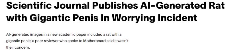 Scientific Journal julkaisee tekoälyn tuottaman rotan, jolla on jättimäinen penis huolestuttavassa tapahtumassa. Tekoälyn luomat kuvat uudessa akateemisessa tutkielmassa sisälsivät rotan, jolla oli jättimäinen penis; emolevylle puhunut vertaisarvioija sanoi, että se ei ollut heidän huolenaiheensa.