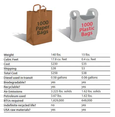 Paperi, tietysti! Kaikki tietävät paperin olevan biologisesti hajoava ja kierrätettävä, kun taas muovi on ihmisen valmistama hirviö, joka pysyy kaatopaikoilla tuhansia vuosia ja tappaa suloisia pieniä merikilpikonnia! Jokainen, joka välittää, ei saastuta muovipusseilla, ja jos näet ruokakaupassa jonkun valitsevan muovia, sinun tulee hävetä ja karttaa häntä sen luontoa vihaavan, Iso Öljyä tukevan ahneen, itsekkään kusipäisyyden takia, joka hän niin itsestään selvästi on!*