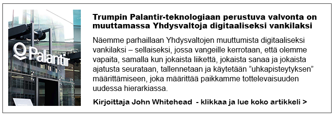 Kyllä, olimmepa sitten kotona, toimistossa, sairaalassa tai Gazan tappokentillä, näyttää siltä, ettei maan päällä ole paikkaa, jossa voisimme paeta Palantir-panoptikonin kammottavia lonkeroita. Ja, juuri kuten ennakkoon varoitin, nyt kun Peter Thielin kätyri on turvallisesti suojassa Trumpin varapressana ja Thielversiläiset täyttävät Trump 2.0 hallinnon jokaisen nurkan, asiat ovat pahenemassa entisestään vapauden puolustajille ja tyrannian vastustajille ”vapaiden maassa ja urheiden kodissa”.
