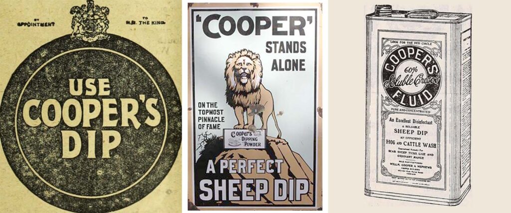 Tarkastellaan sheep dip -valmistetta (nestemäinen preparaatio lampaiden puhdistamiseen loisista). Maailman ensimmäinen sheep dip, jonka keksi ja valmisti George Wilson Coldstreamista Skotlannista vuonna 1830, perustui arseenipulveriin. Yksi menestyneimmistä merkeistä oli Cooper’s Dip, jonka brittiläinen eläinlääkäri ja teollisuusmies William Cooper kehitti vuonna 1852. Cooperin dippi sisälsi arseenipulveria ja rikkiä. Jauhe piti sekoittaa veteen, joten luonnollisesti maataloustyöntekijät – arseeniliuokseen kastetuista lampaista puhumattakaan – saivat joskus myrkytyksen.