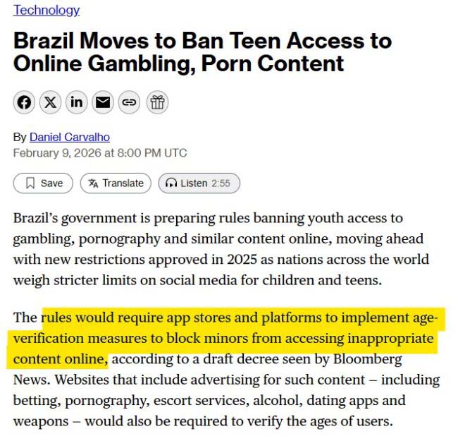 Luettelo maista, jotka haluavat ”kieltää sosiaalisen median lapsilta” (lue: identiteettiportin kautta tapahtuva internet-yhteys), vain kasvaa ja kasvaa.