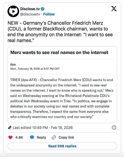 Ainakin Merz on jossain määrin rehellinen aikomuksestaan – anonymiteetin päättymisestä.