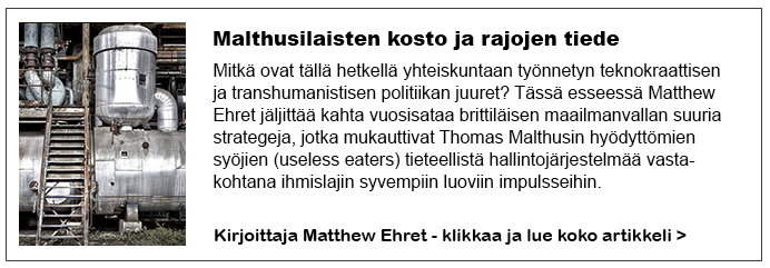 Mainitsemalla Rooman klubin malthusilaisen propagandan 1970-luvun Kasvun rajat -raportista yhdeksi modernin polykriisin ”ensimmäisistä ennusteista”, Tooze päräyttää sitten positiivisesti, kuinka mahtava suunnitelma (teknokraattisen) järjestyksen kaaoksesta tuomiseksi huipentuu globaalin talouden ja kansalaisyhteiskunnan totaaliseen hajoamiseen COVIDin jälkeisessä maailmassa.