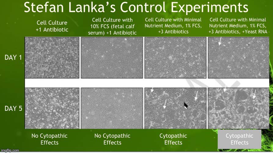 Tri Lankan kokeiden vaihe 1 suunniteltiin osoittamaan, että sytopatogeeninen vaikutus, juuri ne kriteerit, joita käytetään ”viruksen” määrittämiseen soluviljelmässä, voi johtua itse koeolosuhteista ilman ”tarttuvaa” materiaalia. Yllä linkitetty artikkeli sisältää riippumattoman laboratorion tutkimuksen, joka testaa tri Lankalle sytopatogeenistä vaikutusta. Se on saksaksi, mutta se voidaan helposti kääntää englanniksi. Koska kyseessä on kuitenkin melko pitkä tutkimus, halusin tarjota suosikkini CPE-kokeiden erittelyn tri Tom Cowanin erinomaisesta kirjasta Breaking the Spell: